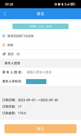 4、之后进入报名界面填写好自己的姓名,再点击报名即可完成公交的定制啦。