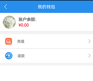 用户在个人中心点击钱包,即可进入钱包页面,可以进行账户的充值和退款。