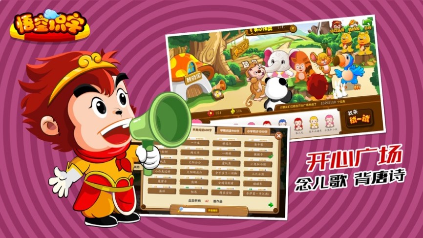 以西游记为故事背景,共有15个场景,120多款识字游戏。