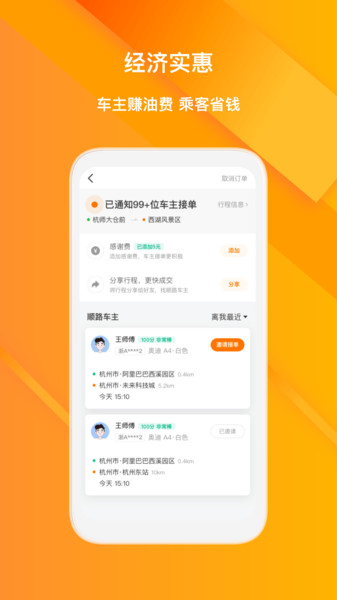 2、开通全国顺风车服务,让乘客省钱,为车主赚得油钱。