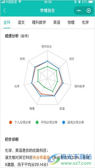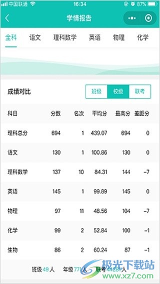 可以将个人成绩与班级的成绩以及学校的成绩进行对比。