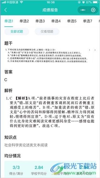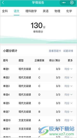 每一小科的得分也可以在软件中看到。