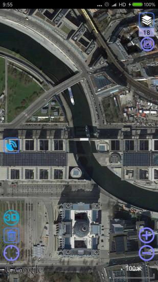 8、同时支持多种知名地图,目前已集成了Google地图与卫星图、Bing卫星图、百度地图、搜狗地图等多种知名地图,用户可在这些地图间自由切换,了解更详尽的信息。可离线下载这几种地图以节约3G流量。