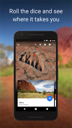 使用 Android 版 Google 地球,只需在屏幕上滑动手指,就能遍览全球。您可以探索远方的大陆,也可以回味故乡的记忆。Google 地图街景视图与地球融合在一起,使您能够漫步街头,感受世界各地的风情。您可以查看包括公路、边界、地点、照片等在内的多种图层,还可以访问 Google 地球图库,发现有趣的地图细节,比如实时地震、飞行中的飞机、徒步路径、城市旅游线路等。