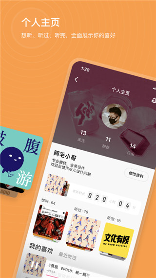 4、展示你喜欢,想听、听过、听完,全面展示你的内容品味,记录你的音频旅程。