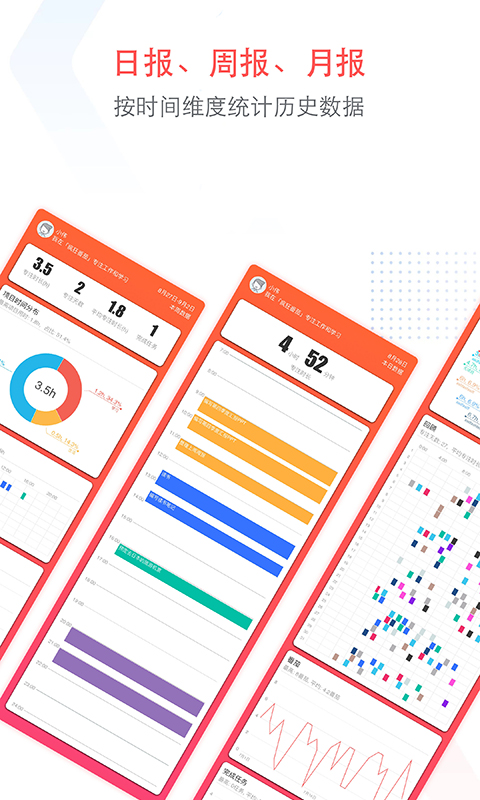 根据天、周、月的维度统计历史数据,用户可以随时查看自己的工作成果。日报、周报、月报功能帮助用户全面了解工作进展,发现潜在问题并及时调整。通过定期总结,用户可以不断优化工作方法,提升长期工作效率。