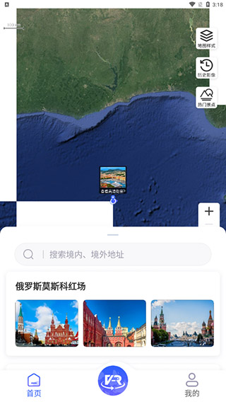2、首页部分可以搜索国内和国外的地图街景,还有热门景点推荐,用户出去游玩不再盲目;