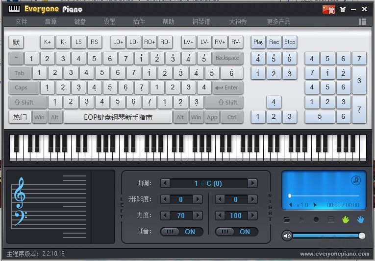 全键盘模拟钢琴软件Everyone Piano中文版是一款免费的,通过电脑键盘来弹奏钢琴的软件,现在已经一大批的软件应用者、爱好者。你不需要购买昂贵的钢琴使用该软件就可以进行钢琴学习、弹奏,如果足够熟练,那么可以弹奏出惊人的曲子,当然,小编是不行了!没这个天份。