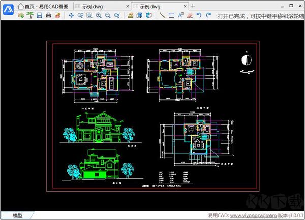 易用CAD看图软件是一款免费的可以查看CAD图纸的软件,使用它你不必安装巨大的AutoCAD即可查看DWG格式文件,其深度兼容autocad文件格式,打开图片速度快,是目前Windows平台下市面上最理想的CAD看图软件之一,主要的是它是免费的!无需注册,也没有VIP接口,易用CAD看图软件支持常见格式图纸打印、可以快速标注测量,能够一键秒开各种3D图纸,全面支持各个版本DWG图纸直接查看,CAD图纸进行查看、标记、测距、照相和录音等功能,不需要安装任何字体内容即可解决中文乱码问题,完美兼容地显示出钢筋符号,界面操作步骤极其简单,小编强烈推荐。