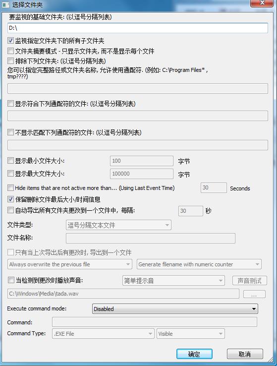 1、打开该程序后,会出现一个设置界面,我们可以选择要监视的磁盘或文件夹,可以排除一些你不需要监视的文件夹、排除不需要的文件,可以使用*通配符。