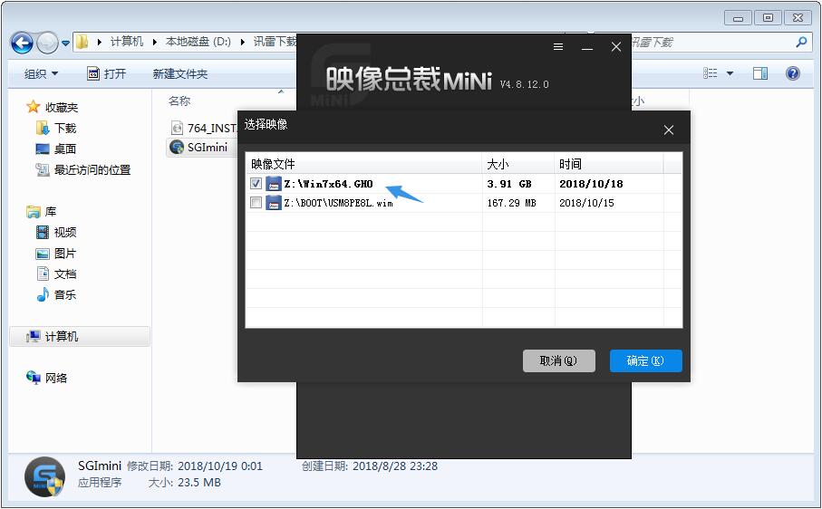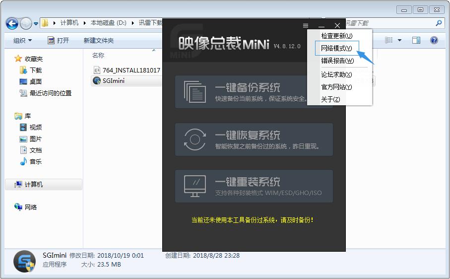 下载好系统安装工具,系统ISO文件和映像总裁,双击运行SGI_MiNi映像总裁,选择一键恢复系统;