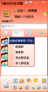 此时即可看到所有设置网段的好友了,下看看如何创建群。点击上方“2个泡泡”的按钮,打开群画面,按提示,双击后选择“新建群”,如图所示: