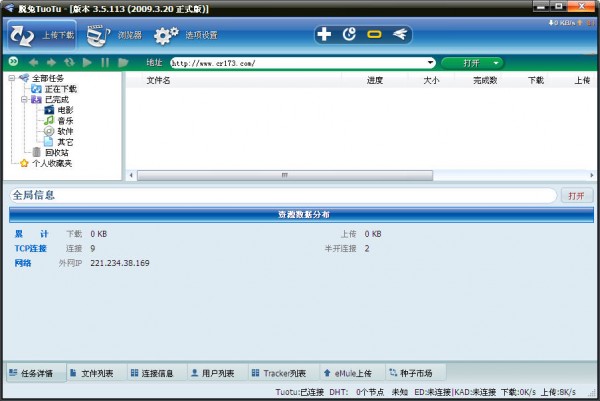 脱兔TuoTu是优质采用第四代跨协议传输引擎的下载软件,该软件同时支持BT、电骡eMule、HTTP、FTP、MMS、RTSP协议的高性能绿色P2SP下载软件。脱兔3能够将原本相互独立的传输协议相互打通,有了脱兔,用户不必再去考虑BT、eMule、http等等下载协议和复杂的设置,只要安装脱兔,就能轻松快速的下载。