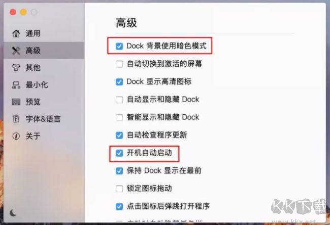在高级面板中,你可以更改Dock面板的背景颜色、设置Dock开机自启动。