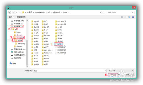 第三步,找到ESP分区盘符,里面就一个efi的文件夹依次点开:efi>microsoft>boot>BCD,打开BCD