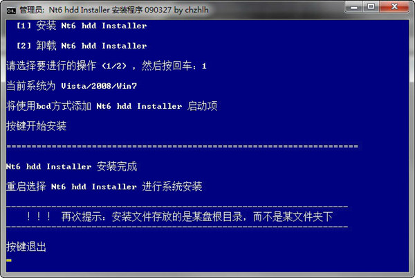 由于使用的是添加引导项而不是旧方法的修改引导项的方法,所以就算少数的机器不兼容grub4dos而无法进入安装界面,也不影响进入原系统。