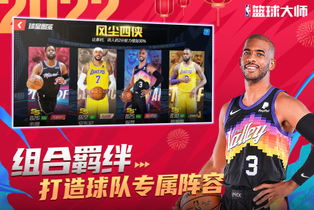 NBA大师手游官方版是一款以真实篮球赛事为核心的策略经营类体育竞技手游。 在游戏中,玩家扮演一名NBA球队经理人,创建并管理一支属于自己的球队,招募现役和传奇篮球巨星。游戏提供了比同类产品更为自由的球员养成机制,从新手到称霸联盟,超级巨星由你亲手培养!