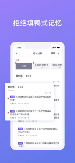 3、智能学习记录司机驾考宝典app拥有智能学习记录功能,会对用户进行系统性的记忆训练,跟踪记录用户的学习行为,提供优质的数据分析和反馈,让您对自己的掌握情况一目了然。